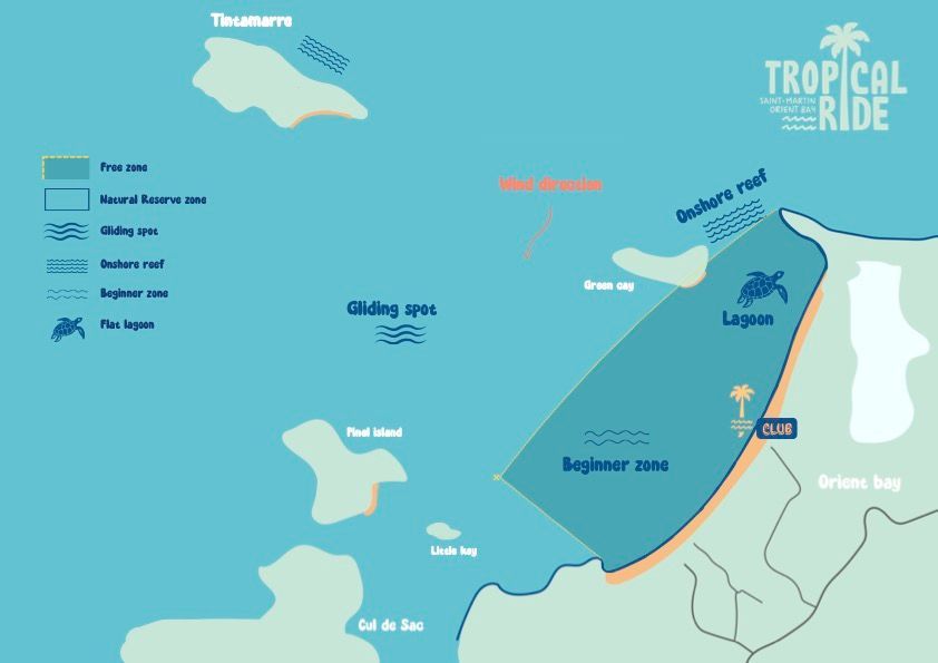La Baie Orientale est un lagon peu profond et protégé, avec un vent side-onshore qui vous ramène à la plage. Nos moniteurs certifiés privilégient la sécurité et la confiance à chaque pas.